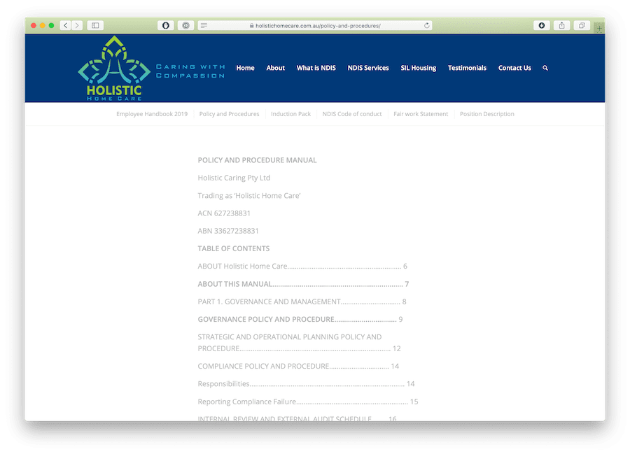 Brevity | Holistic Home Care NDIS Policies | SCREENSHOT